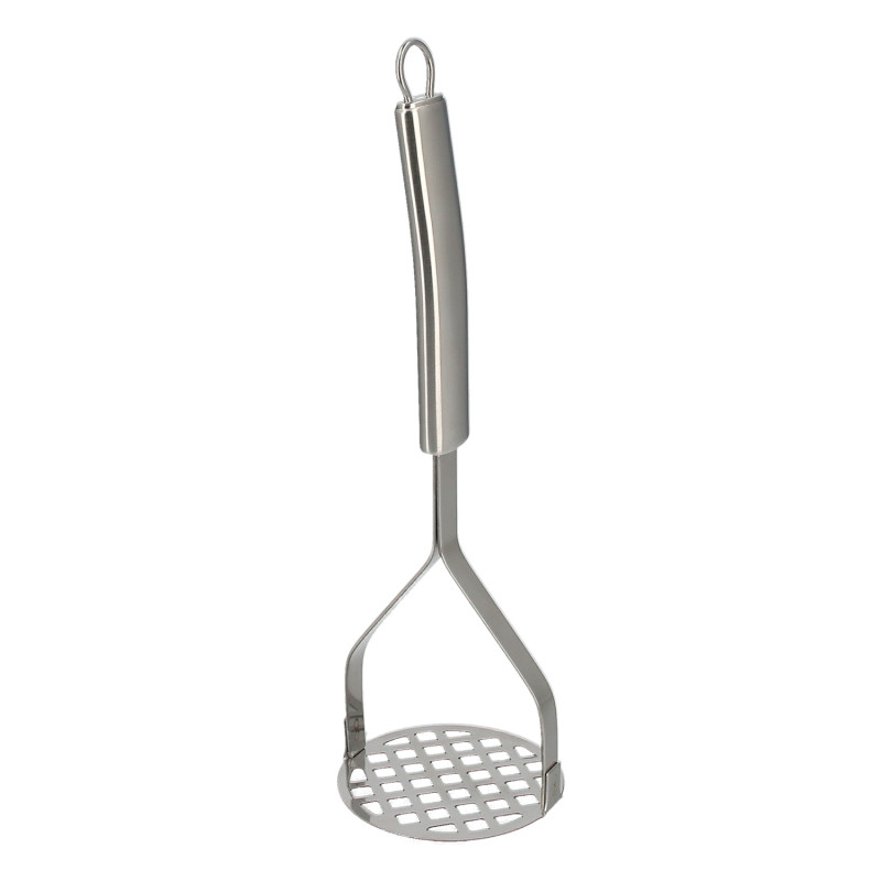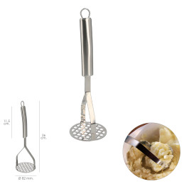 Prensapatatas - Medida: Ø 82 mm. x 26 cm. - Realizado en acero inoxidable de alta calidad, apto para su lavado en el lavavajillas. - Mango ergonomico para facilitar su agarre adaptandose a la mano. - Colgador reforzado. - Libre de bpa, el acero no contiene bisfenol a (bpa), una sustancia que está en la mayoría de los plásticos. - Articulo conocido como prensa patatas, pasapures, prensapures, machacador patatas, prensador fruta, vegetales, etc. - Descubra toda la gama de utensilios de acero inoxidable: cuchara servir, cucharon servir, espumadera, rasera, varillas de batir, cuchara para helados, espatula para tartas, varilla batidora, todos ellos realizado en acero inoxidable.