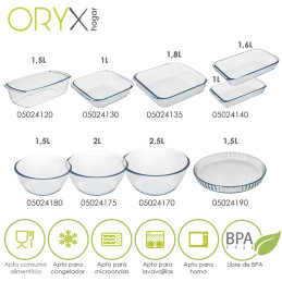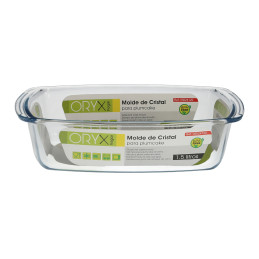 Fuente Cristal Para Horno, 1.5 Litros, Molde Especial Reposteria, 27x14x7 cm. - Molde o fuente de cristal para horno, especial para repostería. - Medidas: 27 x 14 x 7 cm. - Capacidad: 1,5 Litros. - Libre de BPA. - Recipiente apto para microondas, lavavajillas, microondas, congelador y horno (temperatura maxima: 200º grados). - Cristal de borosilicato de alta calidad, que al ser un material no poroso, no transfiere sustancias nocivas, y no conserva olor ni sabor de alimentos contenidos anteriormente. Además, le permite soportar cambios extremos de temperatura sin riesgo de grietas o roturas. - Duradero y resistente a altas y bajas temperaturas. - Gran resistencia a las rayaduras. - Especial para repostería. - Fácil limpieza. - Gracias a sus practicas asas, se obtiene un agarre mas seguro. - Ideal para postres, plumcake, bizcochos, pudin, etc. - Articulo tambien conocido como fuente de horno o molde de cristal para horno.