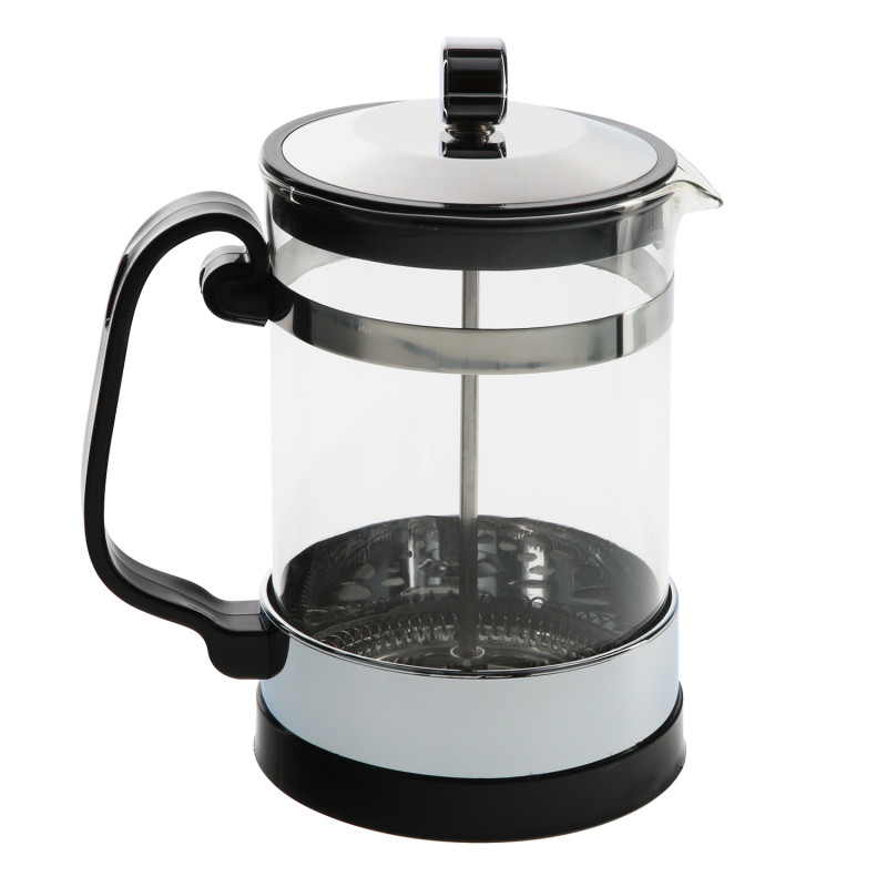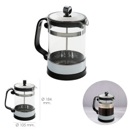 Cafetera Francesa De Cristal Y Acero Inoxidable, Con Embolo, Capacidad De 800 ml. - Cafetera de cristal con émbolo y tapa de acero inoxdable. - Capacidad: 800 ml. - Perfecta para 5 - 6 personas. - Libre de BPA. - Émbolo de acero inoxidable que incluye filtro fino de malla. - Cafetera con el clasico sistema de prensa francesa. Extrae mejor el sabor de los granos de café. - No apto para microondas ni lavavajillas. - Se desmonta con facilidad y se limpia rapidamente con agua y jabón. - Diseño elegante y robusto. - Jarra de cristal de borosilicato de alta calidad. - Base y asa de polipropileno, con agarre a partes metálicas. - Tapadera de acero inoxidable y polipropileno. - Ideal para preparar café, té o infusiones frias. - Tambien conocido como cafetera francesa, prensa francesa o cafetera de filtro.