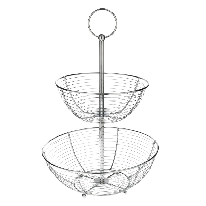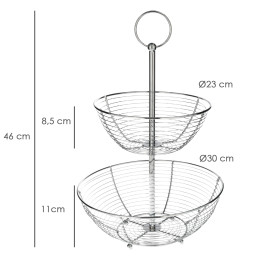 Frutero Acero Cromado, 2 Niveles - Frutero con doble cesto circular tipo canasta en dos alturas. - Práctico, duradero y resistente. - Medidas: Ø 30x46 (Alt) cm. - Color: Inox. - Gracias a su diseño, combina con cualquier tipo de cocina o mobiliario. - Su diseño abierto, tipo rejilla, permite ver facilmente la fruta almacenada, además de dar estabilidad y firmeza. - Fácil montaje, no requiere herramientas. - Sus medidas lo hacen idóneo para guardar cualquier fruta. - Ligero y facilmente transportable, para poder colocarlo en la estancia que se requiera. - Ideal para cocinas, comedores, encimeras, etc. - Articulo también conocido como: frutero, frutero dos alturas, expositor de fruta, estante para fruta, almacenaje de fruta, etc.