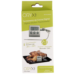 Termometro Digital Cocina Con Sonda Cableada, y Lector Temperatura Con Soporte - Medida: 65 x 20 x 70 (alt) mm. - Este termometro con sonda cableada cuenta con funciones de medición de temperatura ademas de alarma, puede activarse cuando el alimento llegue a la temperatura indicada o podemos programar la alarma por tiempo de cocinado. - Cuenta con una pantalla LCD en la que se muestra la temperatura o el tiempo de cocinado programado. - Sonda fabricada en acero inoxidable. Con una longitud de 155 mm. - La sonda incluye un cable de 100 cm. de longitud, ideal para observar la temperatura de forma constante sin tener que estar abriendo el horno o la barbacoa. - Lectura rapida de la temperatura de los alimentos, entre 2 y 4 segundos. El rango de temperatura es de -26º hasta 250º C. - El lector de temperatura puede ser usado mediante imanes, soporte o usando el agujero para ser colgado. - Se puede usar tanto en alimentos solidos como liquidos. - Incluye una funda con forma de boligrafo para proteger la sonda, ademas la funda incluye clip-colgador. - Ideal para medir la temperatura de los alimentos que se este cocinando. Consiga cocinar sus alimentos favorita a la temperatura perfecta. - Funciona con una pila AAA. - Se puede usar para cocinar carnes, reposteria, barbacoas, frituras, etc.